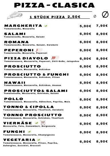 Mozzarella, Tomatensoße, Schinken, Salami, Pilze, Oliven, Ei