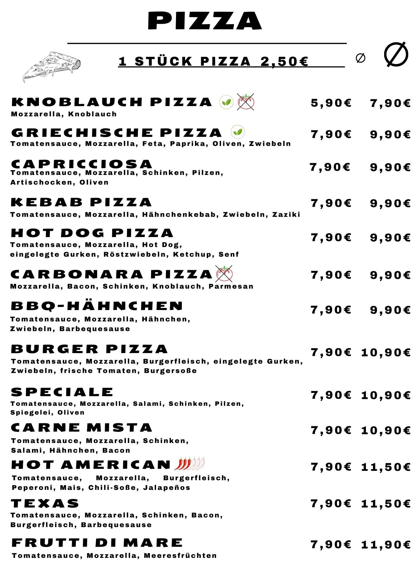 Mozzarella, Tomatensoße, Schinken, Salami, Hähnchen, Bacon